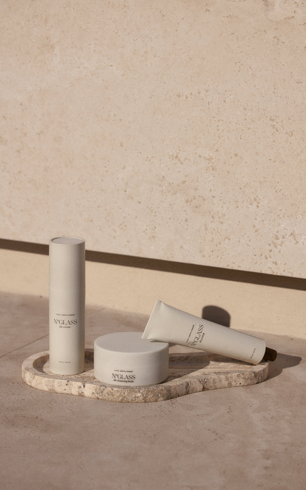 The complete N°Glass routine. A simple, elevated skincare ritual that cleanses, exfoliates, and hydrates, revealing your most glass-like skin.