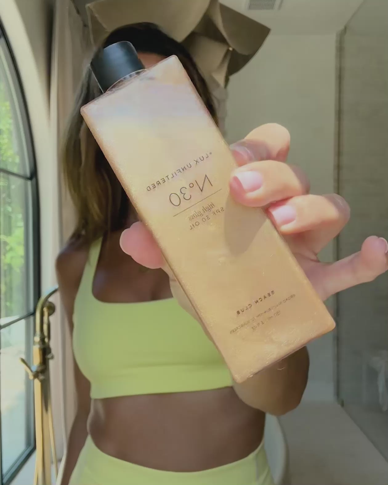 A luxuriously silky SPF Oil that delivers sun protection with a bronze shimmer and high gloss finish. Powered by Broad Spectrum UVA-UVB SPF 30 and skin-loving oils to hydrate and soften. Finished with Beach Club, our signature summer scent.